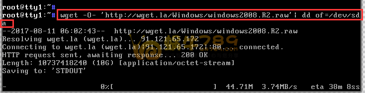 wget -O- 'http://wget.la/Windows/windows2008.R2.raw' | dd of=/dev/sda