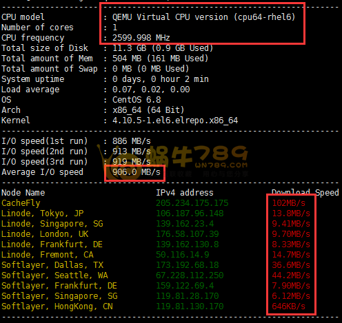 1、基本信息、IO读写、全球下载速度测试结果。
