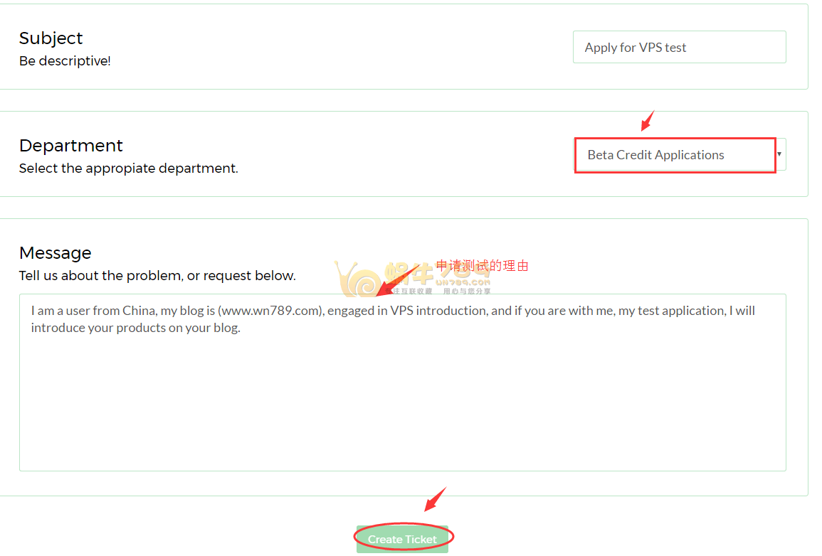 2、然后创建一个申请体验工单,请注意下图红框位置要选择“Beta Credit Applications”,申请填写自己申请理由。最后只能等待审核了。