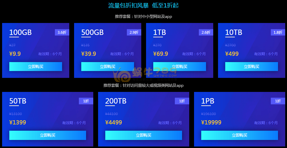 二、流量包折扣风暴,最低1折起。流量包有效期是6个月哦。
